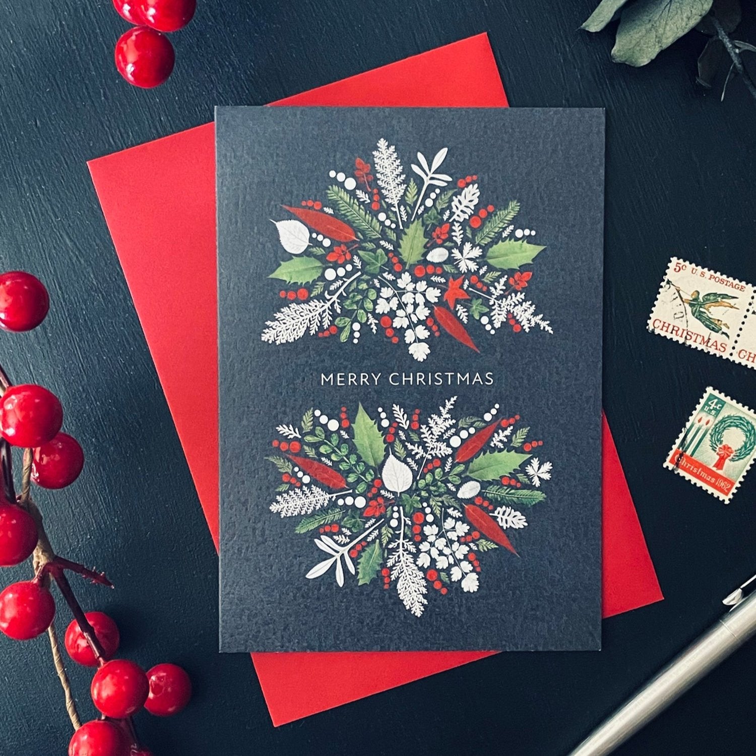 Drawing on the inspiration from my pressed floral range, I've expanded this concept into a festive seasonal collection designed to celebrate the natural beauty of the season. The 'Pressed Winter Leaves' range features arrangements of pressed winter leaves, including Holly and Ivy, in classic Christmas colours. This collection includes elegant greeting cards, charming gift wrap, and stylish gift tags, all crafted to enhance your festive celebrations.