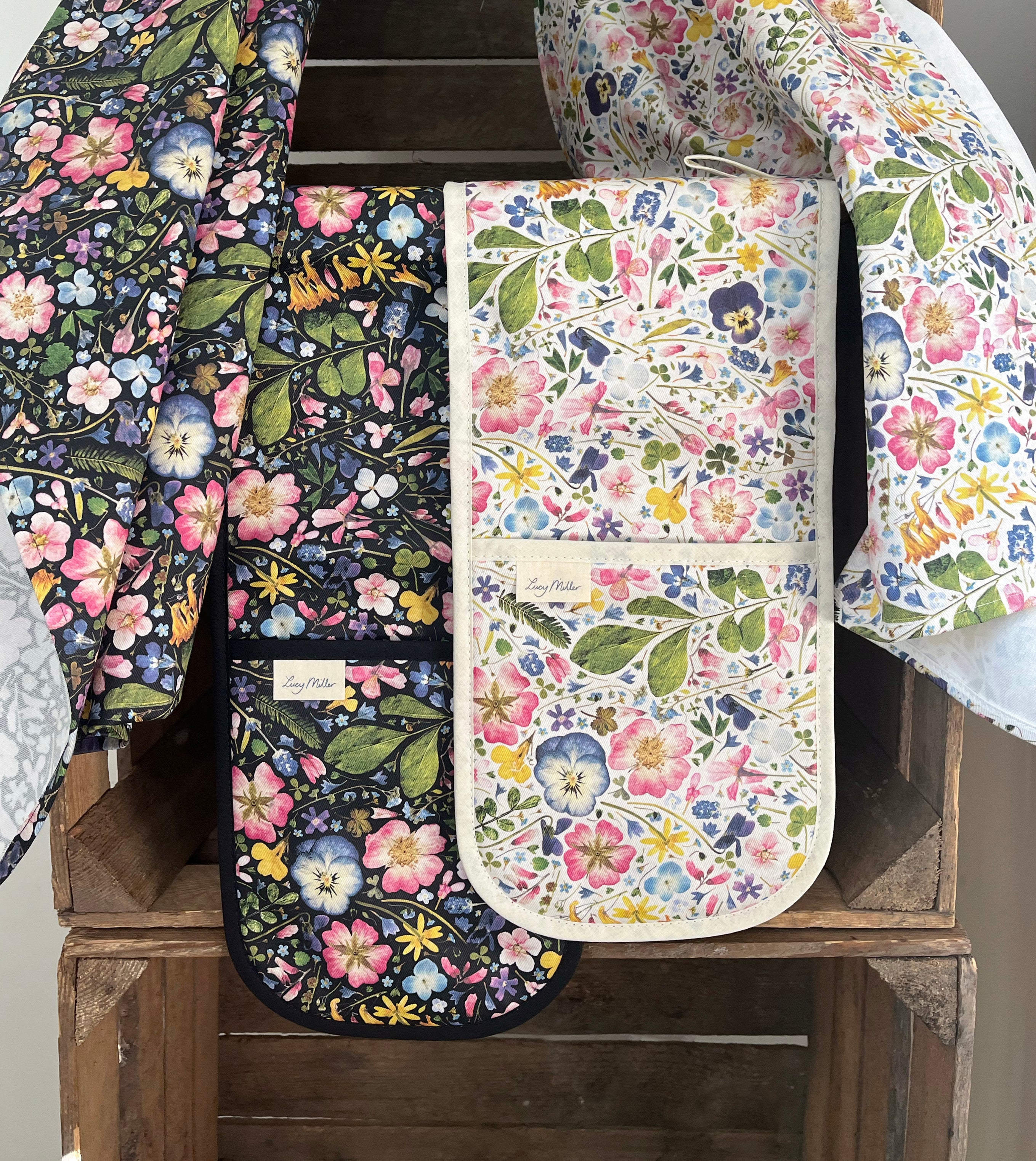 These beautifully crafted oven gloves are the perfect kitchen accessory for those who love to cook and bake. Featuring colourful pressed flowers on a natural/light background, they bring a touch of nature's elegance to your kitchen. They are made from soft, durable cotton, and have a handy hanging loop. Part of my exclusive kitchen textiles range, these oven gloves make an ideal gift for home chefs, bakers, or anyone who appreciates the beauty of nature in their kitchen. Elevate your culinary experience with this charming addition to your kitchen essentials, proudly made in the UK.